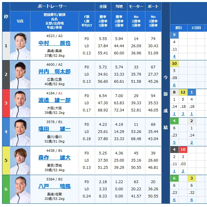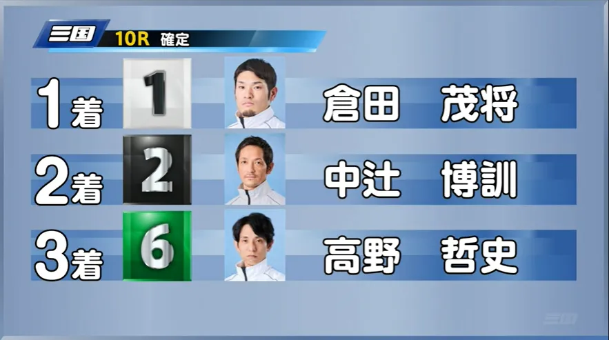 5号艇・中里英夫と6号艇・高野哲史が外側で激しく競り合う展開に!
