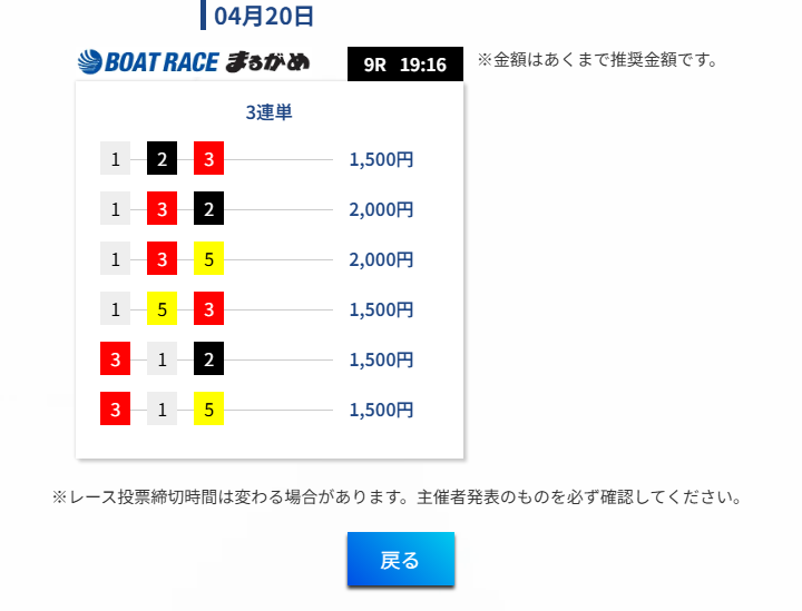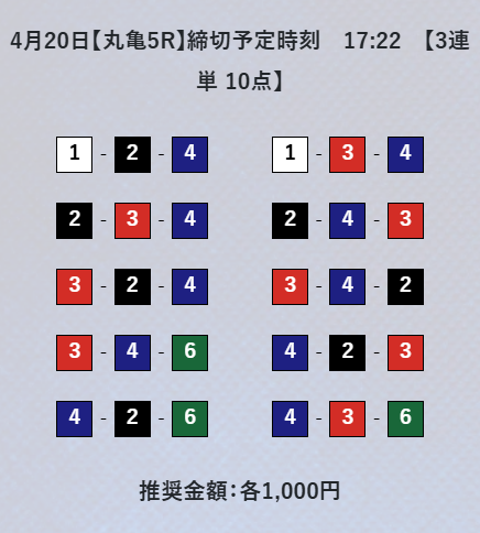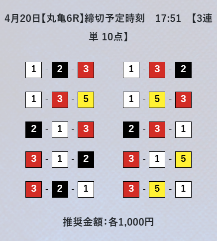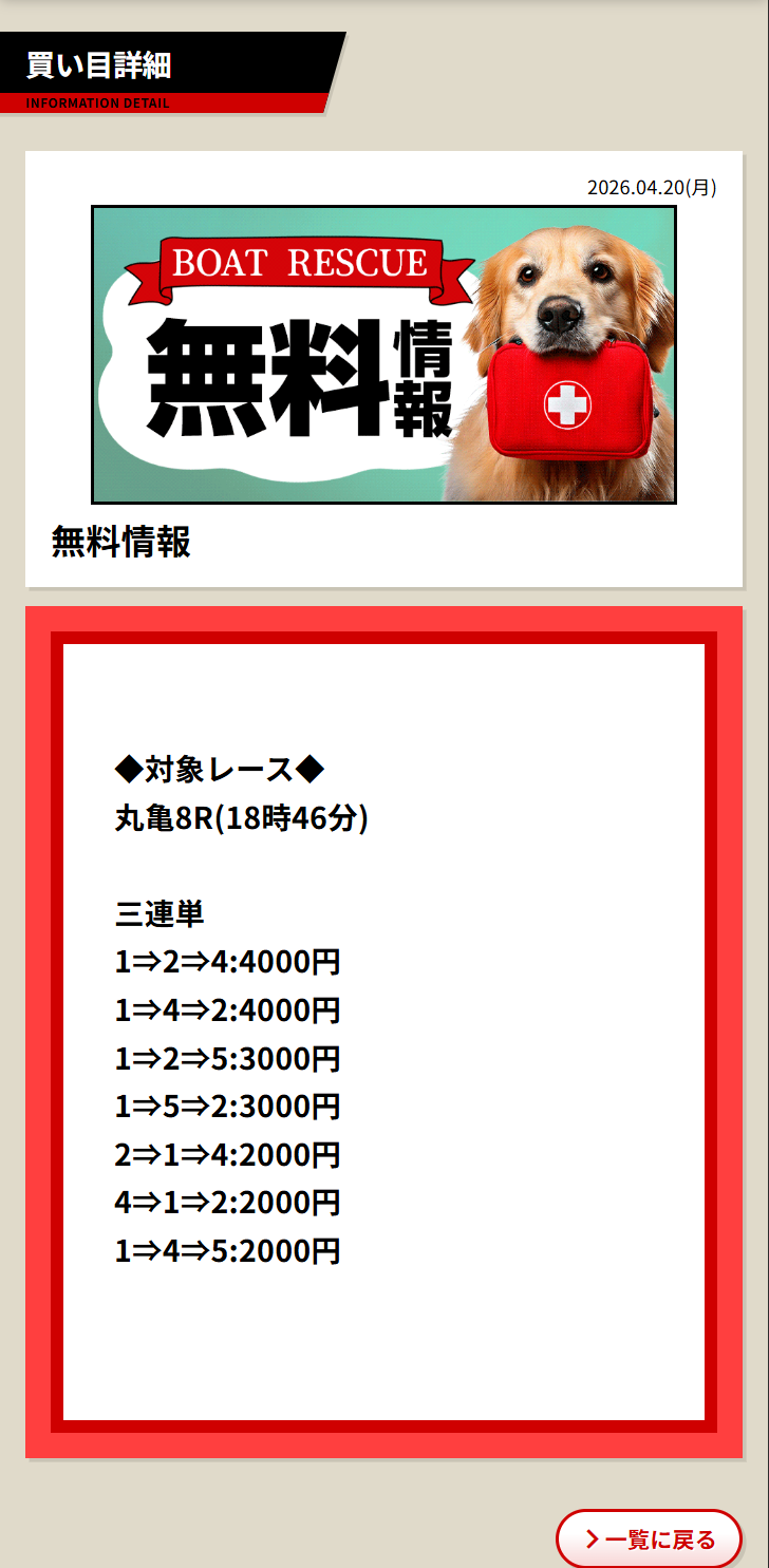 丸亀競艇で今日4月20日(月)行われる競艇レースの無料予想を掲載しております。