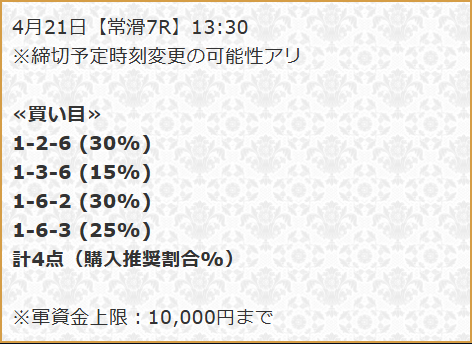 10勝3敗で的中率は76.9%、回収率は102.5%となっています。