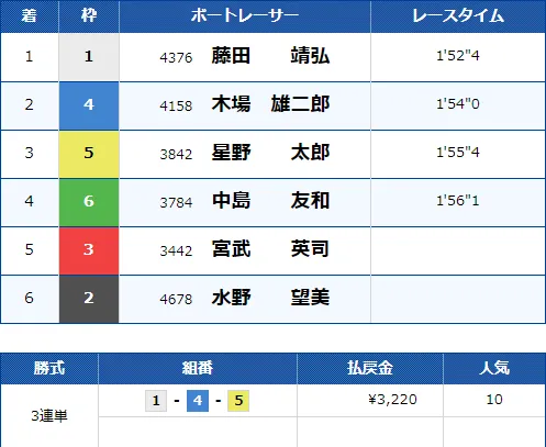 | 日付 | 会場 | 買い目 | 組番 | 結果 | 回収率 |