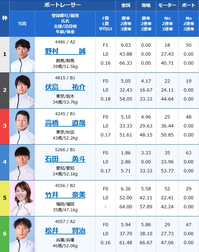 - 6号艇:松井賢治(兵庫・A2)