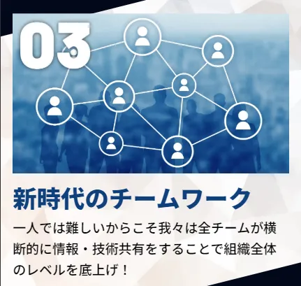 「確固たる実績」「圧倒的な情報量」「新時代のチームワーク」ですか。